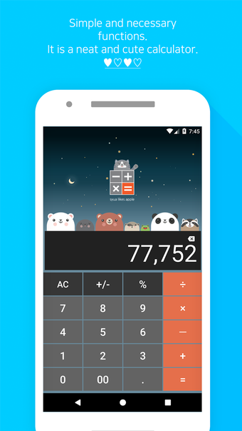 動物電卓 - Cute Animは、Androidデバイス向けに開発された無料の電卓アプリです。その名前の通り、この電卓アプリは可愛い動物のテーマを特徴としており、ボタンを押すたびに目が点滅します。